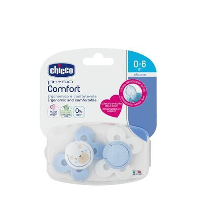 - CHICCO CHUPETE PHYSIOFORMA COMFORT SILICONA 0-6M 2 UNIDADES AZUL